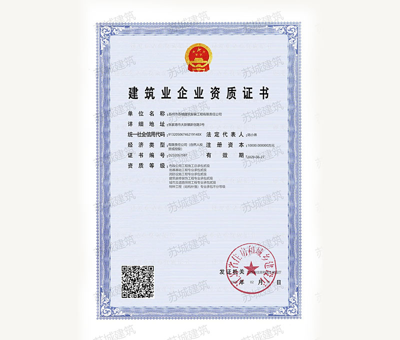 蘇州市蘇城建筑安裝工程有限責任公司,擁有主項建筑工程施工總承包一級資質(zhì),增項市政公用工程施工總承包二級資質(zhì)和建筑裝修